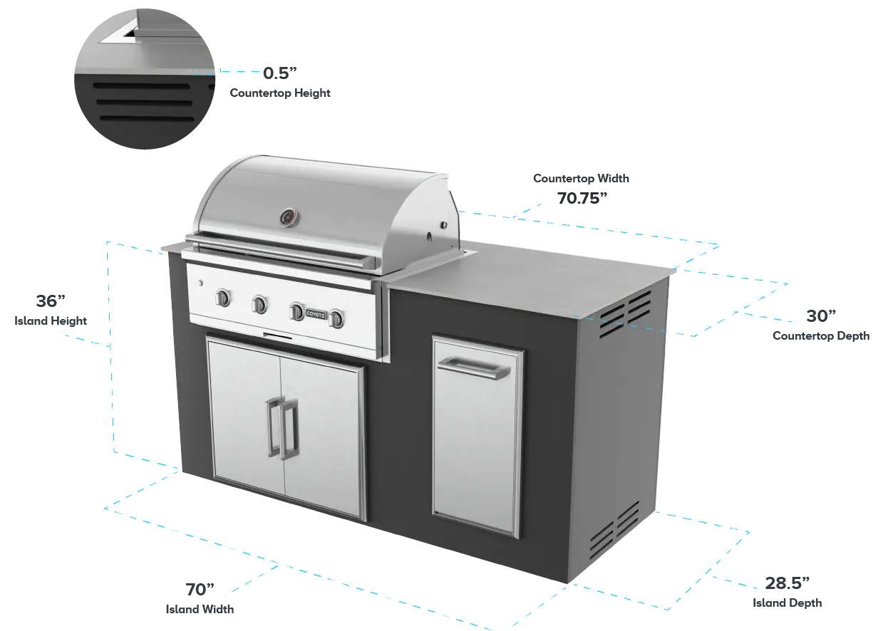 The M6 Waste Bin Island provides a boost in hosting potential, with a modern and sleek aesthetic. You’ll be fully equipped for your gathering, just in time. And for appliances? The M6 Waste Bin Island is fully furnished with best-in-class appliances from Coyote Outdoor Living. The 14” Single Pull-Out Trash & Recycle will keep your yard tidy and spotless without any extra effort. Access to the interior of your outdoor kitchen for repairs has never been more stylish and functional with the 31” 304 stainless steel double access doors. As for the grill, this Coyote 36” C-Series Grill is sure to please. Your guests will be raving about the food for months to come. Here’s the specs: